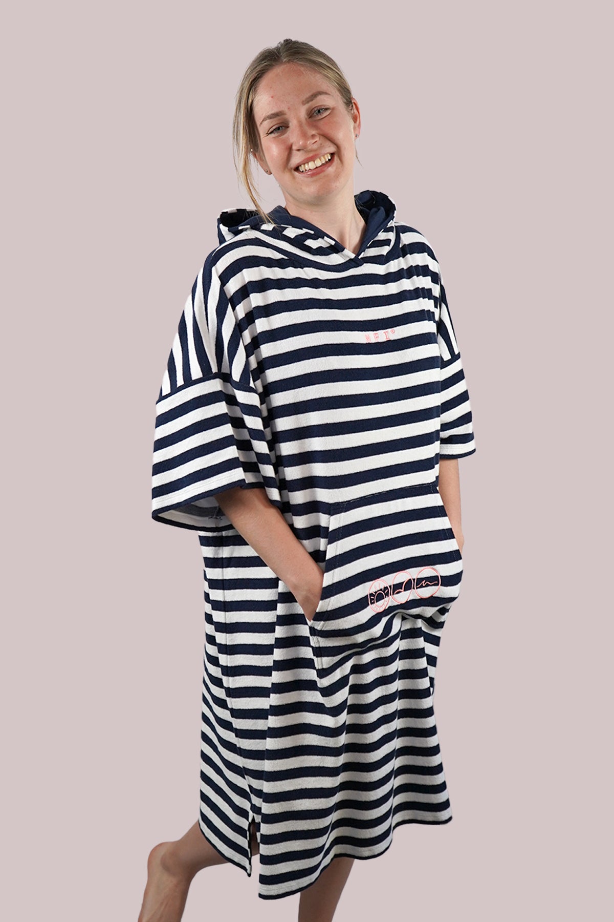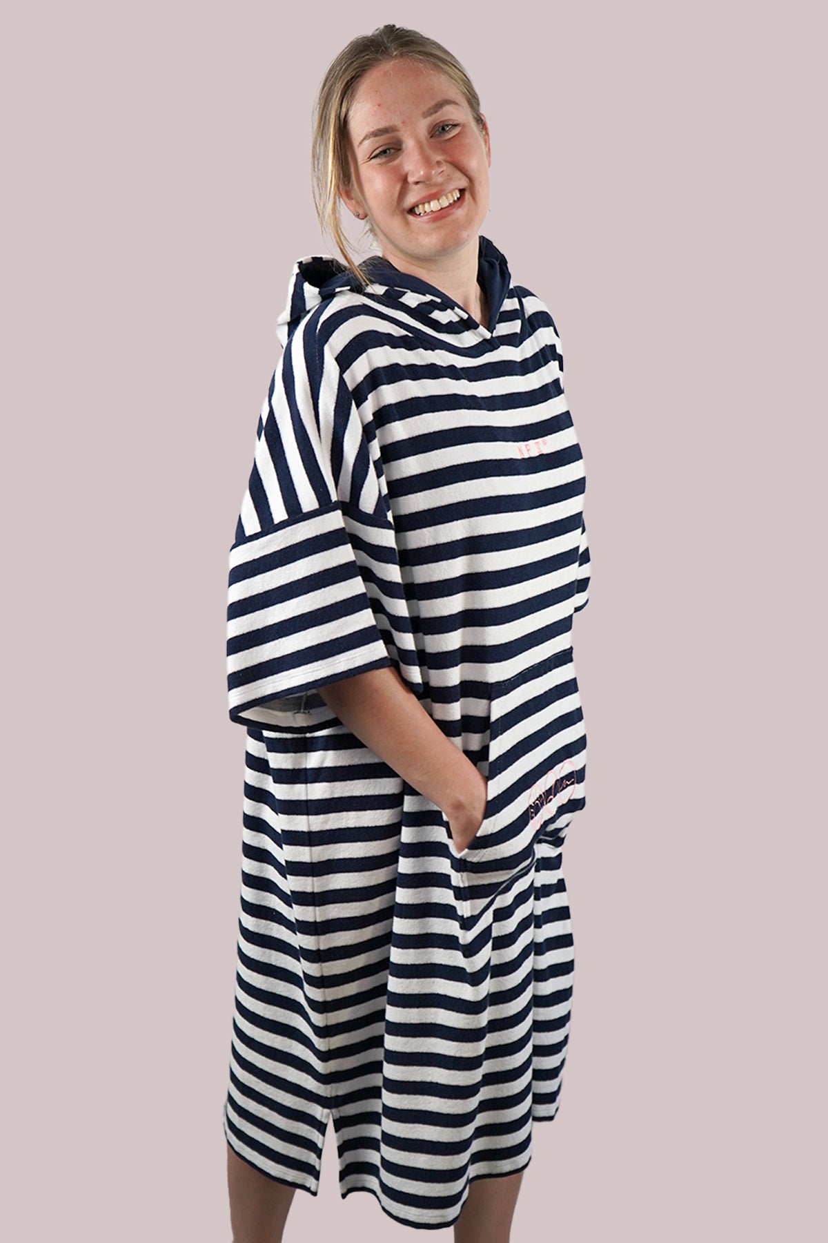 Unser Frottestoff vereint Weichheit und Qualität für ein sanftes Hautgefühl. Hergestellt aus 100% hochwertiger Baumwolle, ist er der perfekte Begleiter nach dem Bad oder am Strand und bietet maximalen Komfort. Erhältlich in klassischem Navy oder Navy-Weiß gestreift, bringt er maritimen Flair in deinen Alltag. Langlebig, saugfähig und atmungsaktiv – für ein Gefühl von purem Luxus.